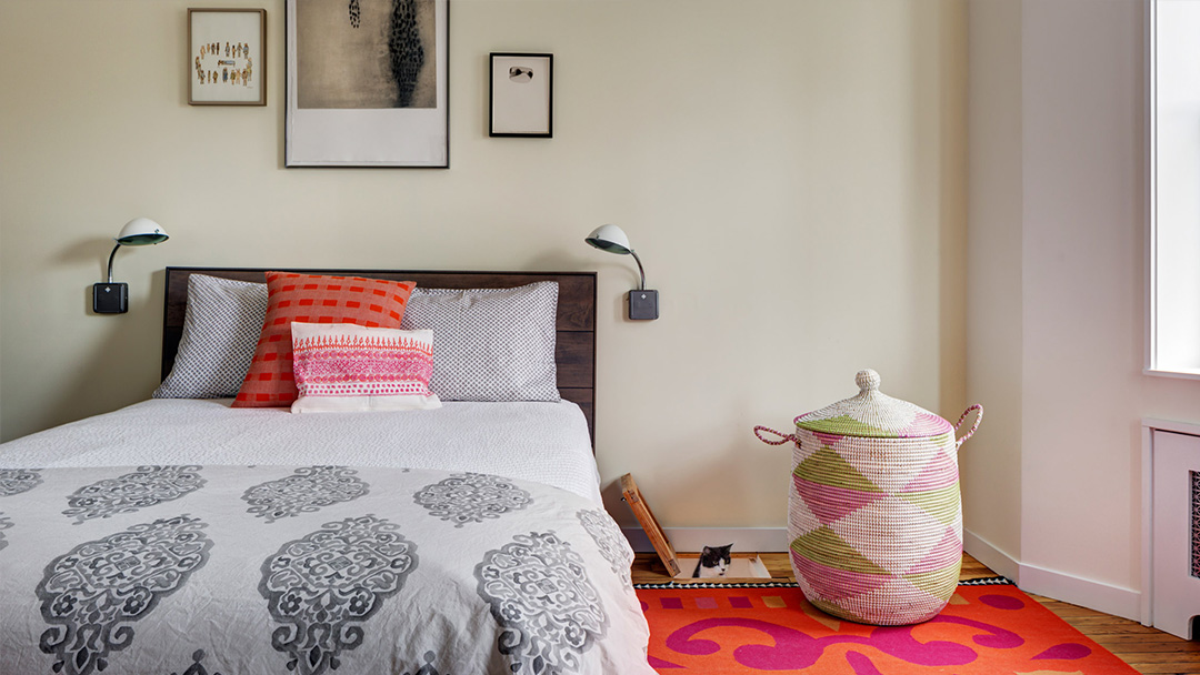 The ground floor is a cat-free area with a guest-room and a gym.